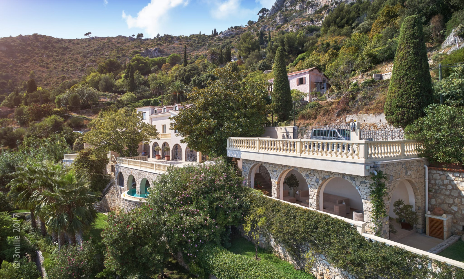 Bâtie sur quatre niveaux, cette demeure rénovée avec goût et matériaux de qualité dispose d'un grand séjour - salle à manger, d’une cuisine équipée ainsi que de cinq chambres et cinq salles de bains. Un appartement indépendant et un grand parking complètent cette offre. Grandes terrasses avec cuisine d’été, sauna, solarium et piscine semi - couverte avec une vue imprenable sur le Cap Martin.