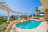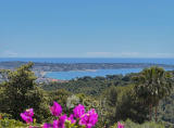 Située sur les hauteurs de Golf-Juan , dans un quartier résidentiel et paisible, cette magnifique villa bénéficie d’un emplacement privilégié offrant une vue exceptionnelle sur la mer et le Cap d’Antibes depuis toutes les pièces. Édifiée sur un terrain arboré de 1 688 m² agrémenté d’arbres fruitiers, la propriété dispose d’une piscine et développe une superficie habitable d’environ 225 m². La villa se compose comme suit : Rez-de-chaussée : une entrée, quatre chambres dont trois avec vue mer panoramique et accès à la terrasse, deux salles de bains. Rez-de-jardin: un vaste séjour avec salle à manger et coin bibliothèque ouvrant sur une terrasse avec vue mer et piscine, une cuisine indépendante, un bureau, et des toilettes invités. Sous-sol : un espace bien-être avec sauna, une salle pouvant être aménagée en salle de cinéma ou autre usage, une cave, des espaces de rangement ainsi que la chaufferie. Une dépendance d’environ 30 m² peut être utilisée comme salle de sport, atelier ou maison de gardien. Un parking couvert permet d’accueillir jusqu’à 2-3 véhicules.