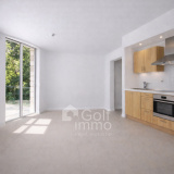 La cuisine moderne et équipée s’ouvre sur un séjour lumineux, offrant un espace de vie agréable et convivial.
